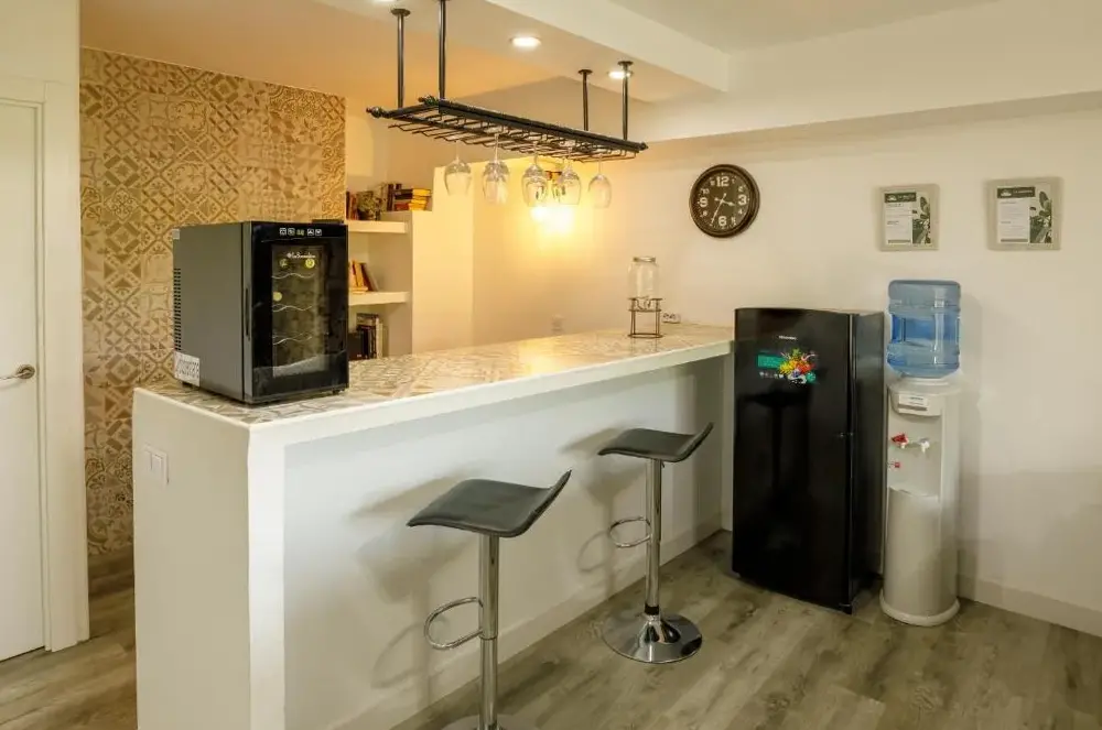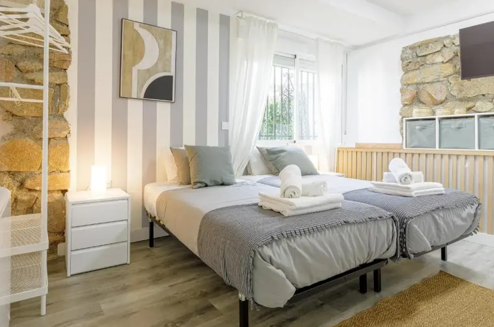 Hébergement spacieux: Casa Rural La Goleta II à San Martín de Valdeiglesias propose un appartement spacieux avec deux chambres, un salon et une salle de bain. La propriété comprend une terrasse solaire et un jardin, offrant un espace extérieur relaxant. Amérités modernes: les clients apprécient le wifi gratuit, une cuisine entièrement équipée avec un réfrigérateur, un micro-ondes, un lave-vaisselle et un four. Les équipements supplémentaires comprennent une machine à laver, un bureau de travail, une télévision et une entrée privée. Espaces extérieurs: L'appartement dispose d'un coin salon extérieur et d'une salle familiale, idéal pour la détente et la socialisation. Un parking gratuit sur place est disponible pour la commodité des clients. Attractions locales: située à 31 mi du monastère El Escorial et à 60 mi de l'aéroport d'Adolfo Suarez Madrid-Barajas, la propriété est entourée de possibilités de sports nautiques. Très bien noté pour son emplacement pittoresque et son hôte attentif.